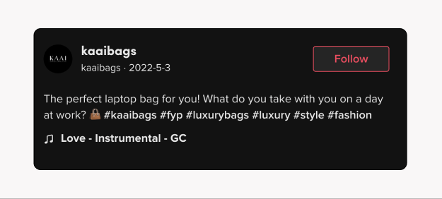 In this example, Kaaibags has added the keyword to their description, and has amplified their content piece through Spark Ads. Likes, comments and views seem to be the way to rank these videos.