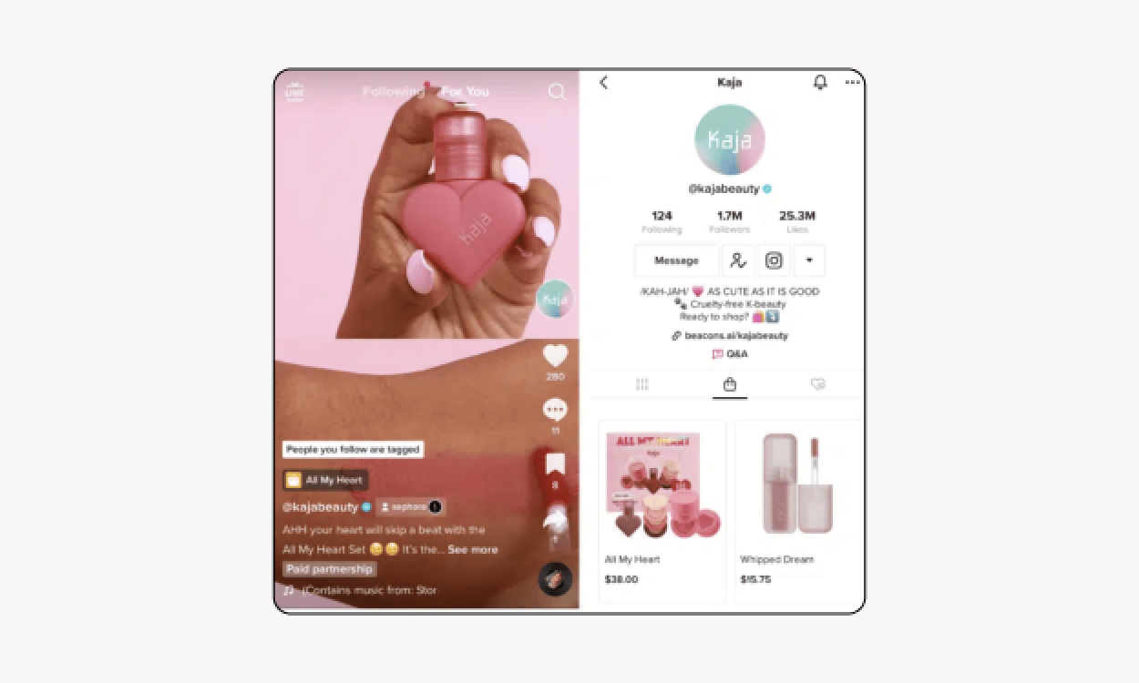 TikTok commerce refers to using the popular video app to buy or sell products and services. Here’s a glimpse into what this looks like: